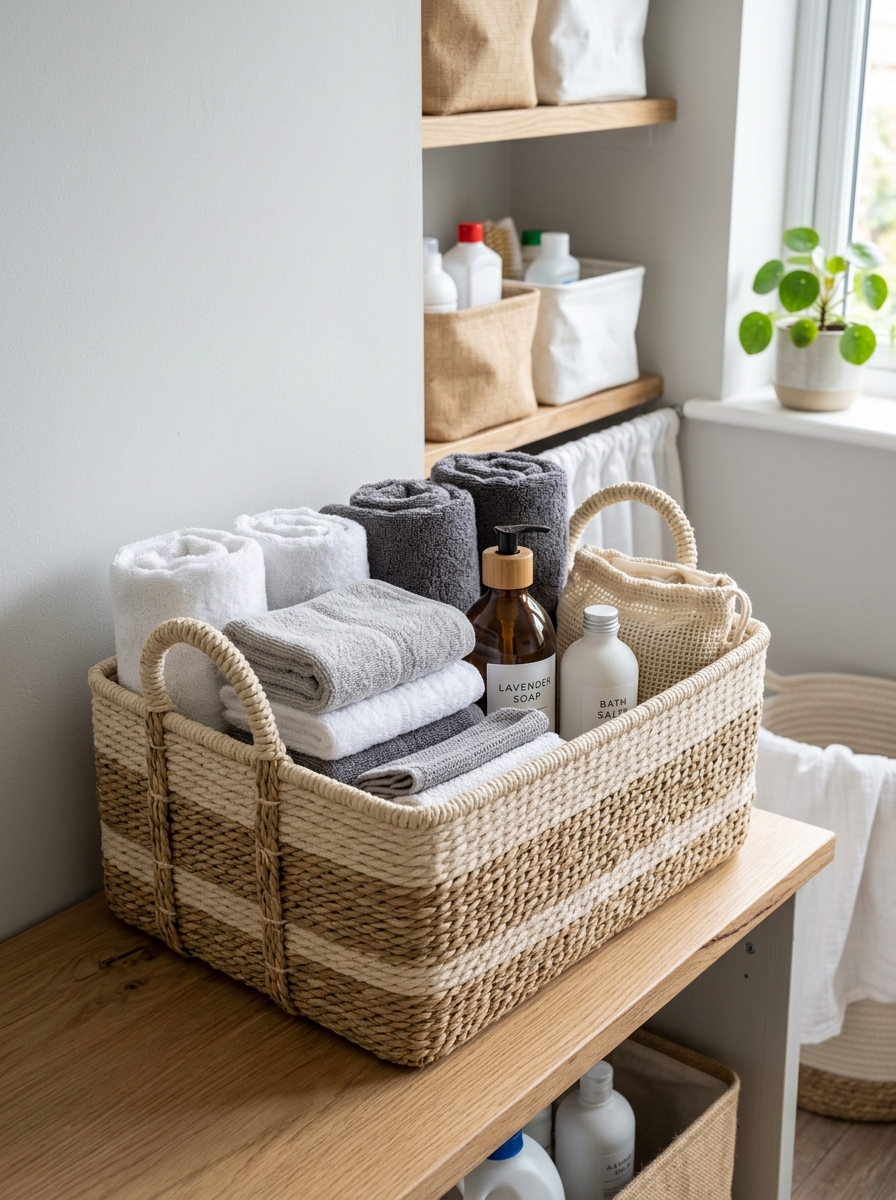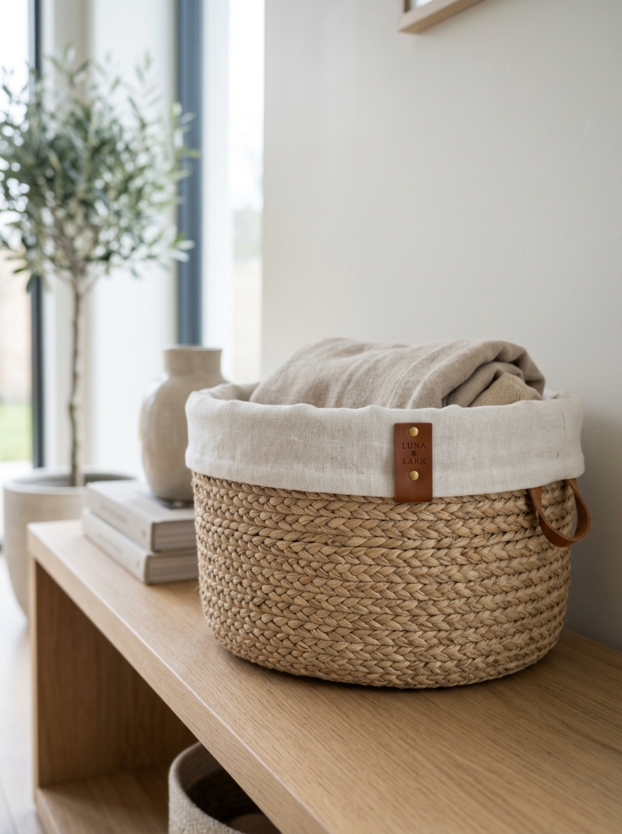 If you love simplicity and hate clutter, this one’s for you. A minimalist basket keeps things clean, neutral, and timeless.